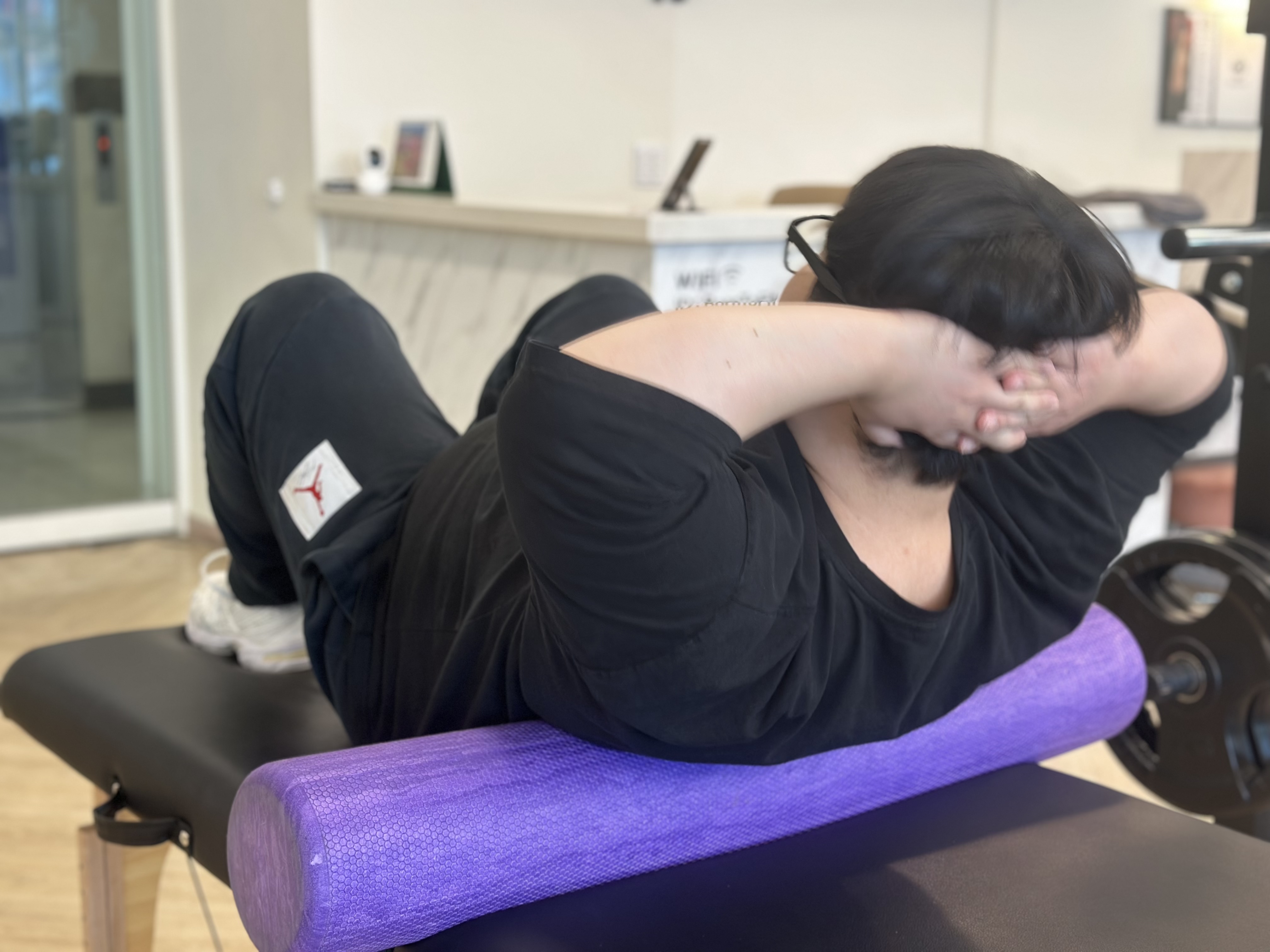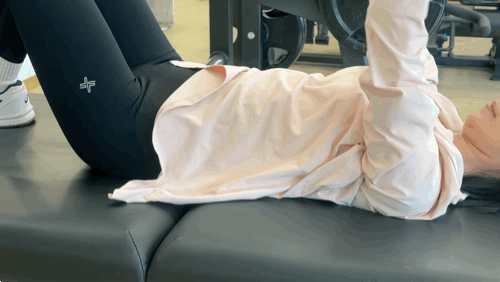 무릎 당기기 + 복식호흡 3회